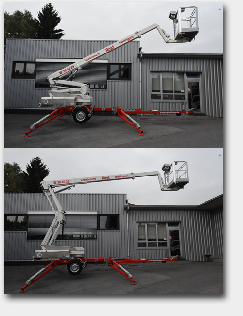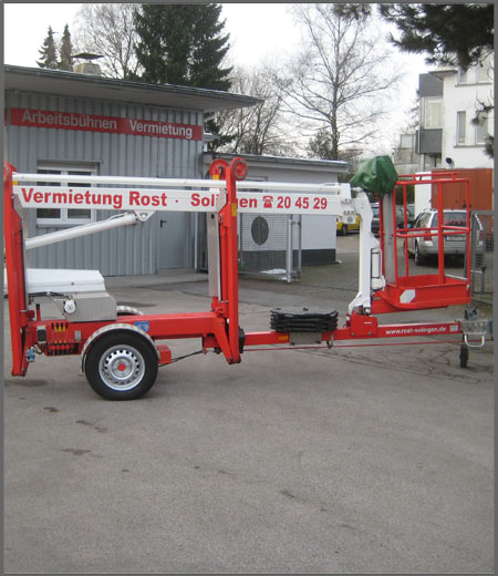 Anhänger-Arbeitsbühnen sind die preiswerte Alternative zu LKW-Arbeitsbühnen und erreichen bis zu 16 Meter Arbeitshöhe. Ihre geringe Bauhöhe und ihr geringes Gewicht prädestinieren sie für den Einsatz unter beengten Platzverhältnissen oder auf Böden mit geringer Traglast. Bei einer Transport-Breite ab 1,10 m sind Anhänger bestens für den Einsatz in Innenräumen geeignet. Dazu sind diese Bühnen mit 230V Elektroantrieben ausgerüstet.