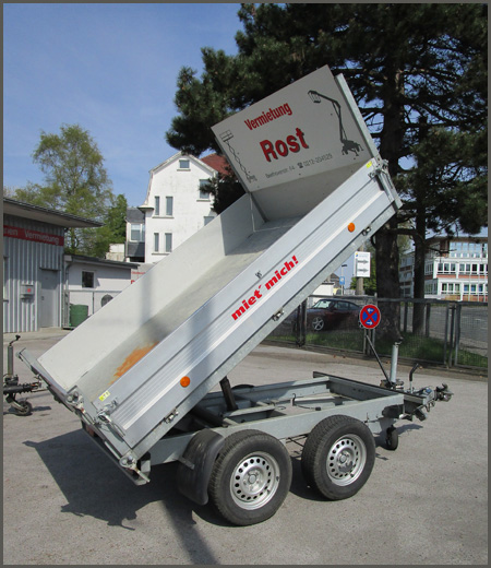 Wir bieten Ihnen einen Anhänger-Rückwärtskipper mit 2t Zuladung bei einem Leergewicht von 700 Kg.