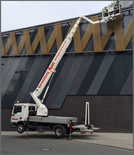 LKW-Arbeitsbühnen sind die Höhenmeister in unserem Programm. Sie sind durch den fahrbaren Untersatz am flexibelsten einzusetzen. Sie verfügen über eine Aufstellautomatik, die ein einfaches Auf- und Abbauen ermöglichen.