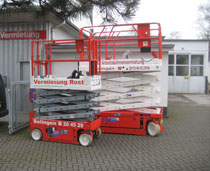Unsere Scherenarbeitsbühnen sind für den Innenbereich konzipiert und bieten eine maximale Arbeitshöhe von 10 m. Alle Reifen sind "nicht markierend" und damit auch für empfindliche Böden geeignet.